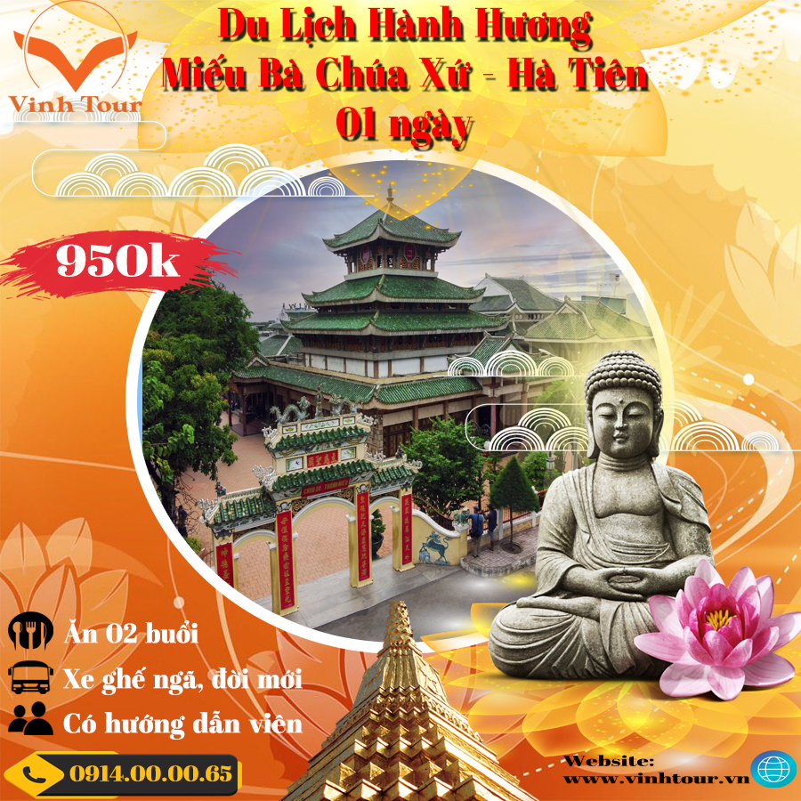 - Miếu bà chúa Xứ – trung tâm hành hương lớn tại Miền Tây được biết đến với lễ hội Vía Bà Chùa Xứ Núi Sam (24/04 Al) được công nhận lễ hội cấp quốc gia vào năm 2001 . Quý khách có thể cầu an cho gia đình, người thân.